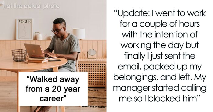 This person shares their story on one of the Reddit communities explaining how they walked away from a 20-year career and resigned with no notice. The post received quite a lot of netizens’ attention and collected more than 4.3K upvotes and 204 comments.