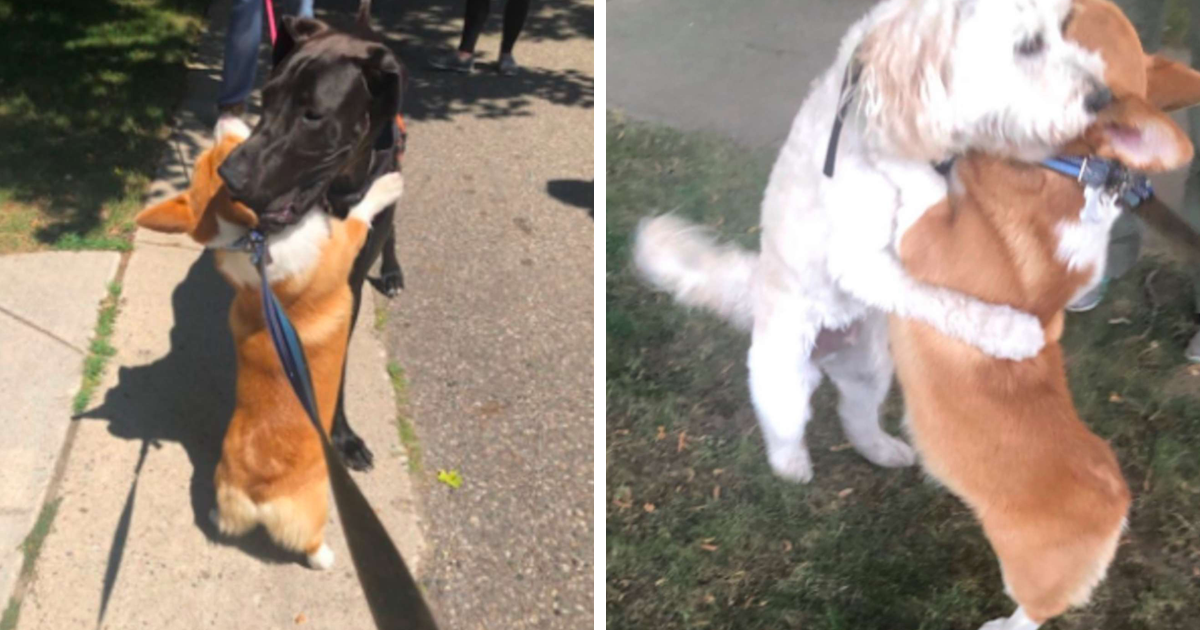Tired Of Social Distancing, Corgi Hugs Every Friend He Meets On His Walks