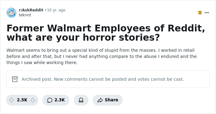 Load More Replies...Working in retail sucks in general, but working in Walmart often sucks even more. People online are joking that Walmart is becoming the new Amazon: poor working conditions, virtually no work-life balance, small wages, and an unsafe environment are just some of the things that make it one of the least desirable workplaces.
