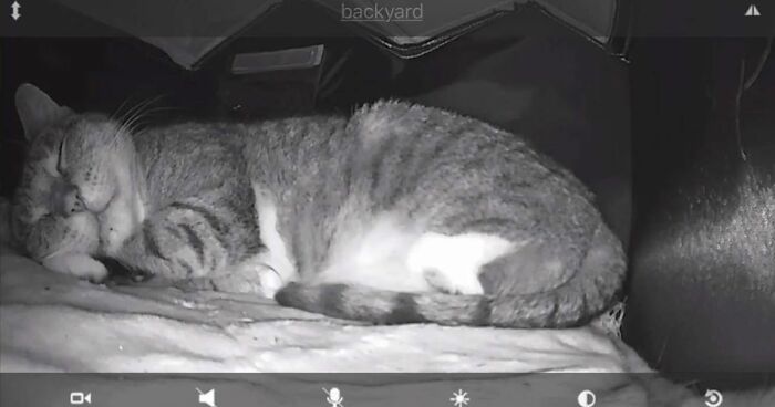 After installing night vision camera the family ended up snapping cute pictures of the cats sleeping