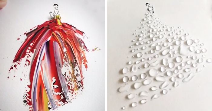 Fashion Illustrator Designs Spontaneous Dresses Using Paint And Water Drops