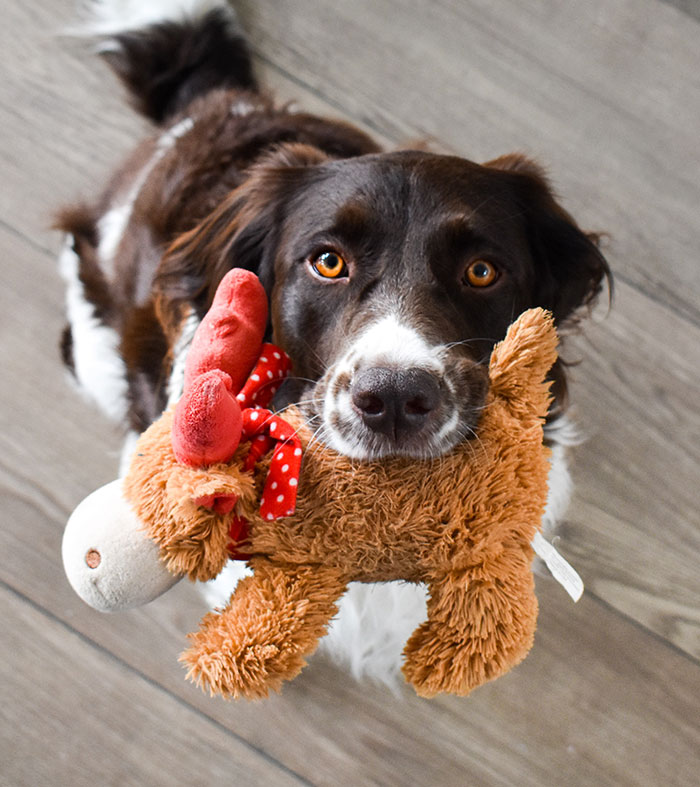 Sharing isn’t just for preschoolers! “If your dog brings you one of their favorite toys and drops it at your feet, it’s likely they are giving it to you as a gift,” Dr. Miller says. “Sharing their favorite things is one way they demonstrate love.” Make sure you choose safe toys for your furry friends!