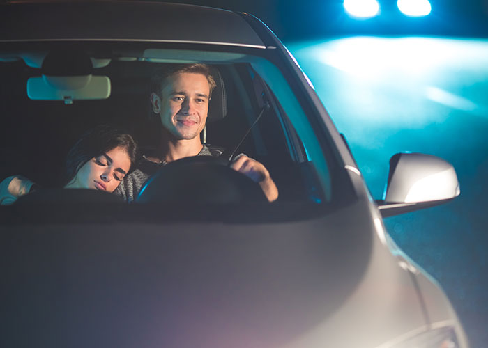 2 AM or so, driving in an unlit road.