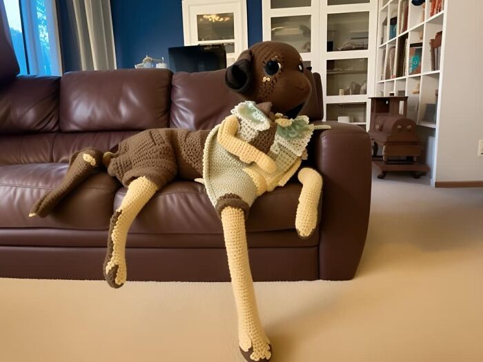 Enter a top-secret (not really) AI app, Photoleap. This fancy bit of tech takes photos of our rescue doggos and spits out, well, crocheted versions of them. Think of it as the ultimate Instagram filter for the non-shedding, cuddle-ready kind.