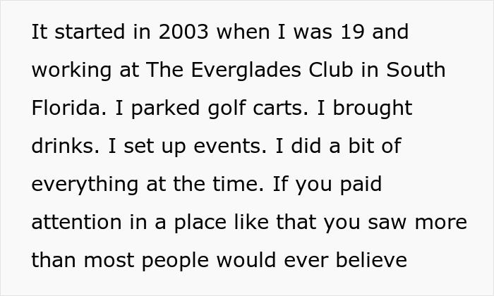 There are lots of secret layers to the lives of the ultra-wealthy. Some people have the opportunity to take a peek behind the curtain and see what actually goes on when money barely matters and everything is for sale.