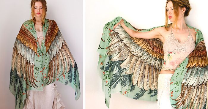 Thanks in no small part to supportive Bored Panda’s fans and followers from a post last year, Roza Khamitova, a fashion designer in Byron Bay Australia, has expanded her line of winged scarves.