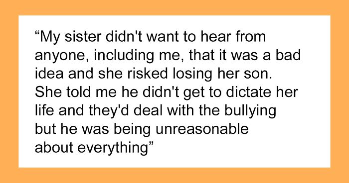 People in the comments also support the original poster as much as possible, claiming that she’s doing absolutely the right thing by siding with her nephew. “I hope your nephew is doing well with his grandparents and getting the love and attention he needs,” one of the commenters wrote. “I’m glad someone is putting his emotional and mental well-being first. I really don’t understand parents that place a relationship before the well-being of their children.”