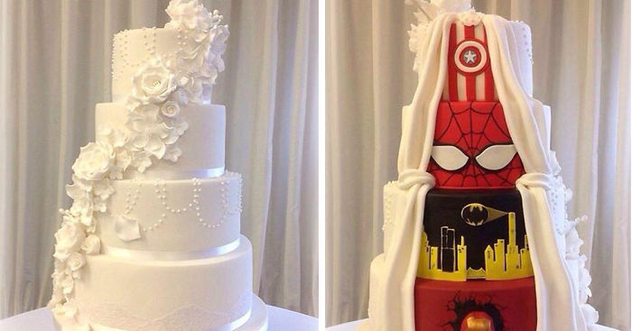 When a comic book buff and his fiancée got married, they decided to treat their guests to a ‘Two-Face’ wedding cake that would satisfy both the superhero fan in him, as well as her wish for something traditional.