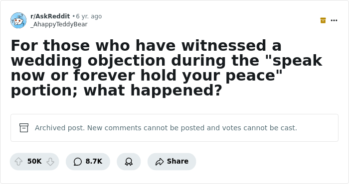 Which of these stories did you find the most intriguing? Have you ever witnessed a wedding where someone actually stood up and said, "I object"? Share your thoughts and experiences in the comments below!