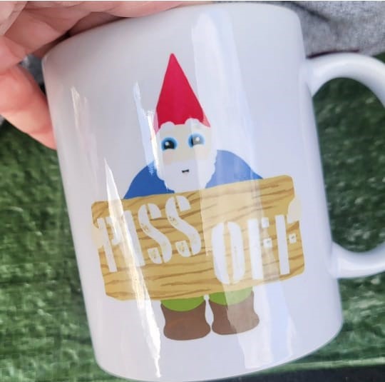 Funny mug with a fox illustration and humorous text, a bizarre treasure found in a secondhand shop.