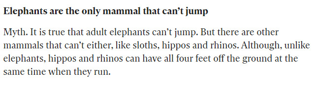 Elephants are the only mammal that can't jump.