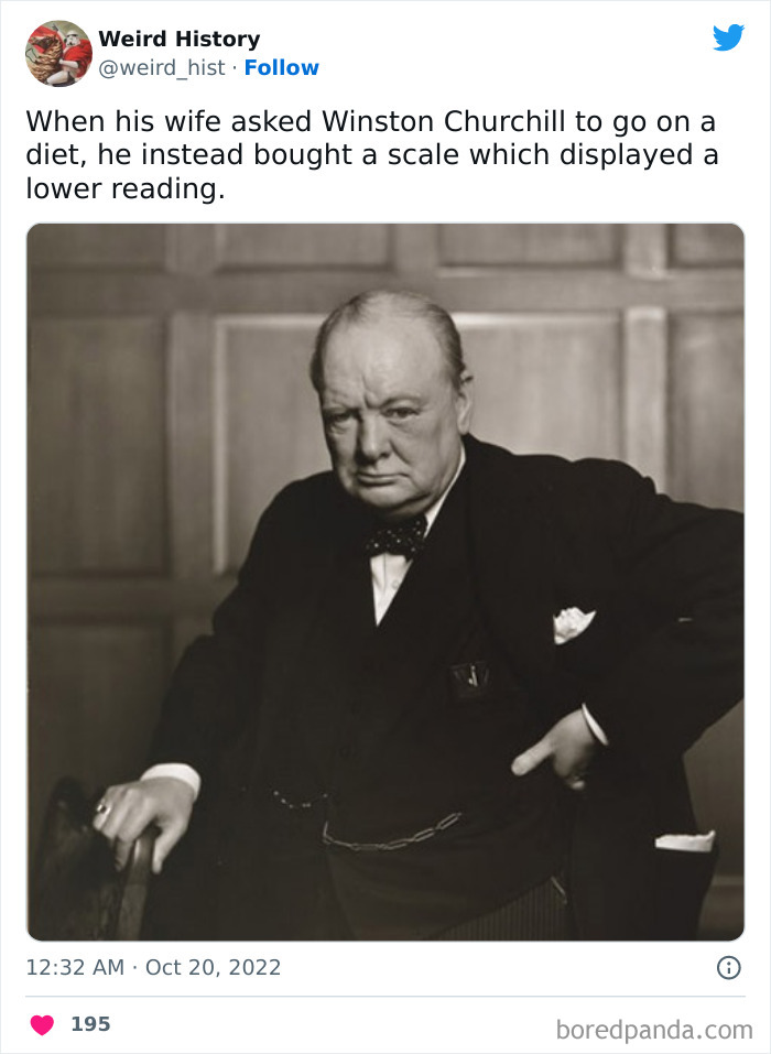 The “Weird History” Twitter account gathers trivia, fun facts, and interesting images from the past in an attempt to make the entirety of human existence more digestible to the average person. So “scroll” through and upvote whatever surprised you and add your own historical fun facts in the comments section.