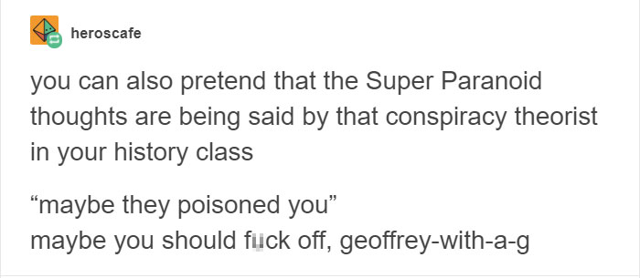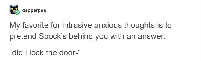Many of us deal with anxiety and intrusive thoughts, and people develop different coping mechanisms to live with them. This one, put forward by Tumblr user bulbubsaur, may just be the most hilariously effective method so far.