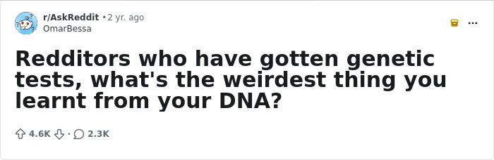Someone asked people “who have gotten genetic tests, what's the weirdest thing you learnt from your DNA?” and netizens posted their stories. So get comfortable as you read through, upvote your favorite stories and if you’ve done a genetic test before, share your experience in the comments down below.