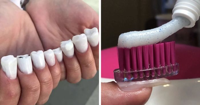 Nails are one of the trendiest topics in the beauty industry. Because what fashionista doesn't love to show off her perfectly manicured nails? With nails salons being a booming business, competition is tough, so some salons must get creative to attract new clientele. For our entertainment, there's one salon that probably outdid all of their competitors by creating designs that are going viral all over the internet. But the truth is, probably only a few of us would actually wear nails like that - as most like to actually be able to use their fingers... The salon is called Nail Sunny and is based in Russia. It was raised to the spotlight for its intricate nail designs which are - let's just be honest here - crazy. For instance, some of their clients' nails were made to look like actual teeth and milk bottles that squirt real milk. Not shocking enough? Then scroll below for the full list!