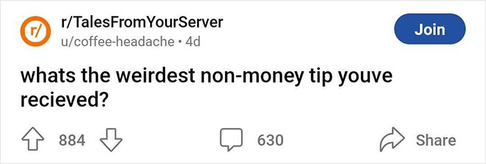 These are just a couple of real-life examples of the unconventional tips servers made. They shared it on the ‘Tales From Your Server’ subreddit after one user asked them what was the weirdest non-money tip they’ve ever received. Their answers ranged from heartwarming expressions of kindness to moments that might make one puzzled at best, each likely to be something they’ll never forget. Scroll down to find them on the list below.