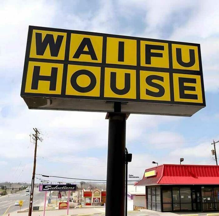 This one really confuses me. I can't tell if this is photoshow ar if it's real because the sign in the back says "Seductions". Did someone turn a Waffle House into a strip club? That just happens to be next door to another strip club? I'm not sure what is real anymore.