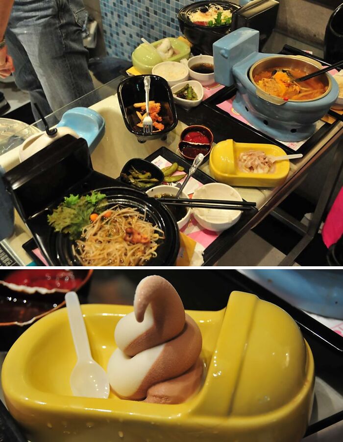 Contrary to what most decent folk would advise, this restaurant turns a deaf ear to the notion that you shouldn't poop where you eat. Expect dishware shaped like toilet bowls, acrylic toilets that double as dining chairs, rolls of toilet paper instead of napkins, and glass-topped sinks that double as dining tables. It's an obvious choice for dessert—chocolate ice cream swirled like a 💩. Hopefully, finding the restroom isn't a problem.