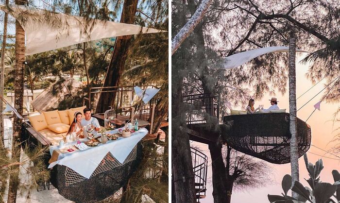 The name speaks for itself. This little tree pod restaurant is located in a charming setting on one of the numerous trees in Thailand's Soneva Kiri Eco Resort. It's meant to resemble a bird's nest placed high in a tree. The idea was to provide a unique eating environment where customers could enjoy their meals while being raised at least 16 feet above the ground. In addition to the fantastic panorama of the vicinity, the coolest part is having all that mouthwatering food carried to you by zip-lining waiters. It's unique, it's crazy and very romantic.