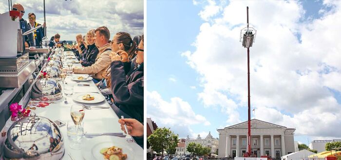 Having dinner in the sky is now a reality; you don't even have to work for NASA to enjoy it! Dinner in the Sky takes dinners quite literally higher than any other restaurant. If you attend one of these dinners, you will be secured in an illuminated platform elevated 150 feet into the air by cranes. Participants in the unique dining event are served plated dishes on a fully decorated dining table, so don't worry about the wind blowing off your paper plates and utensils. Also, do all your toilet necessities beforehand if you don't want your dinner in the sky experience to end ahead of time.
