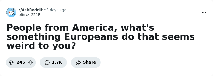What are some of the strangest things you’ve noticed and culture shock moments you've experienced while traveling abroad, dear Pandas? What are some cultural peculiarities that you’ve personally witnessed, whether while vacationing in Europe or the United States?