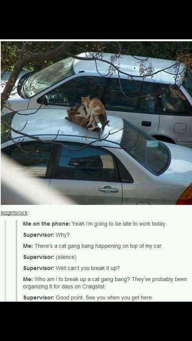 If it was an actual kitty cat on his car, I would have told him to take the week off - can't go disturbing those little purr babies!
