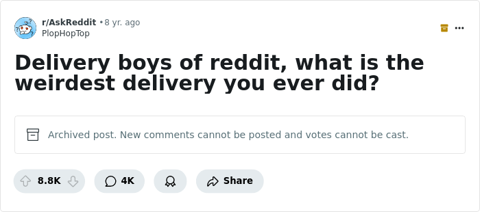 Someone asked “What's the most awkward encounter you've had with the delivery guy (and vice versa)?” and people shared their worst experiences from both ends. So get comfortable as you scroll through, upvote your favorites and be sure to deliver your own thoughts to the comments section below.