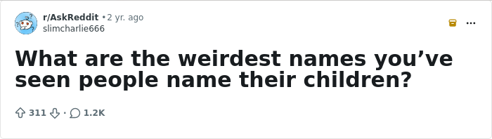 Where do you think the line is where a name becomes objectively weird? What do you think we can all do to be proud of our names, no matter how odd they might sound to others? Let us know what you think.
