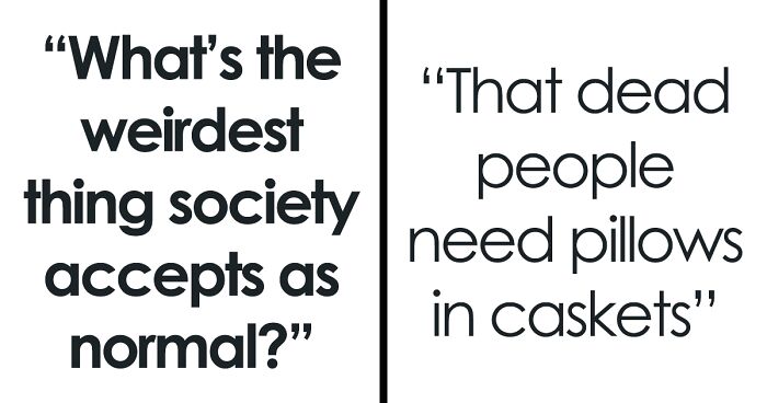 The folks on this list share all the examples of things that have been accepted as normal that are actually pretty weird and bizarre. Some of them you might agree with, and others you might have opinions on. Maybe you might even come up with examples of your own!