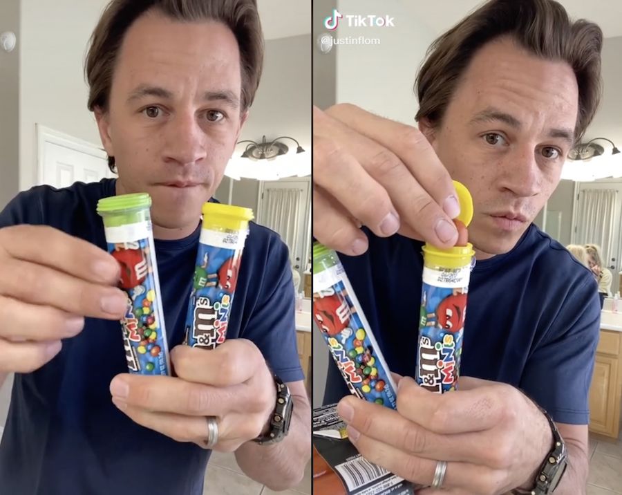 here's the best picture i could find, there is a hot dog inside the m&m container Screen-Sho....49-AM.jpg