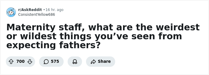 Someone asked “Maternity staff, what are the weirdest or wildest things you’ve seen from expecting fathers?” and people shared their most unhinged stories. So get comfortable as you scroll through, upvote your favorites and be sure to share your own thoughts and experiences in the comments down below.