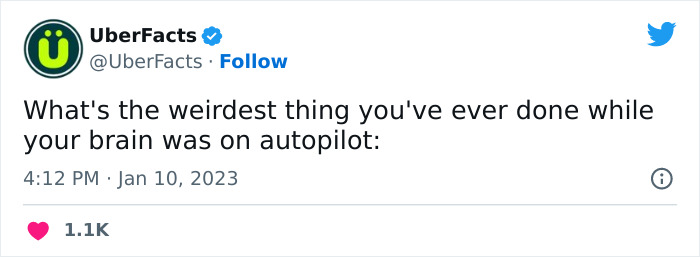 People were asked to share their own stories with mental autopilot in a Twitter thread that went viral. So make sure you are seated somewhere comfortable, scrolling through and upvoting your favorites. And if you want to learn about more bizarre things people have done, you can find more stories on this topic here and here.