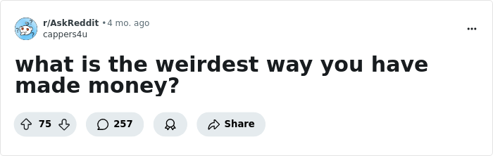 Or, you can choose to do something more out-of-the-box and take a page out of these folks' books. We've gathered the most interesting answers to the question: "What is the weirdest way you have made money?" and present them to you here.