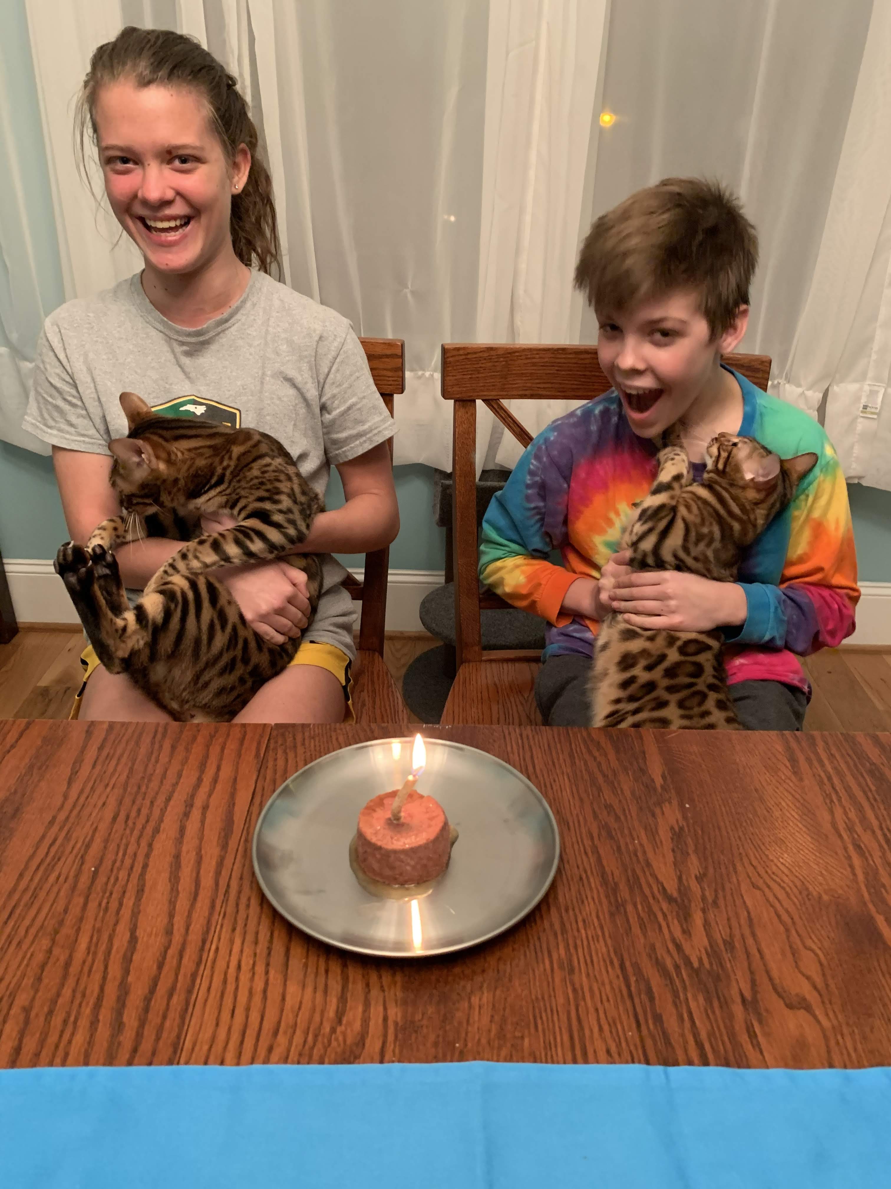 He was living with my grandparents and he is back! Im so happy and so is Mitsy (His Sister). We gave him a little meat and this picture made me laugh!
