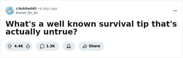 Today, we’re looking at other well-known “survival tips” that may actually do more harm than good. If any of these have been ingrained in you, now’s the time to start unlearning them.