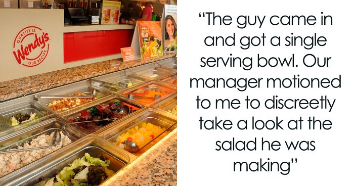 Load More Replies...From experience of working with this, do not, I repeat, DO NOT, eat from open salad counters. The amount of disgusting customers who just shove their bare hand into each section to put on their plate (or just into their mouth) on a DAILY basis is enough to make you vomit.