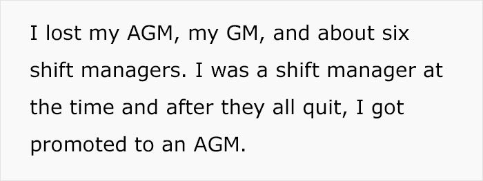 But the TikTok user, who goes by the name mintjuul.666, has painted a much broader picture of the situation. The man said that during the pandemic, he lost his assistant general manager, general manager, and six coworkers while he continued working as a shift manager. Eventually, he was promoted to an assistant general manager position and took on 85-hour work weeks with no days off to keep the joint up and running, making just $14.77 an hour.