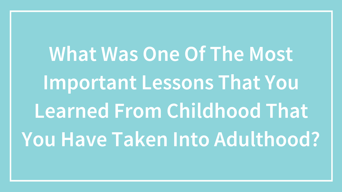 What Was One Of The Most Important Lessons That You Learned From Childhood That You Have Taken Into Adulthood?