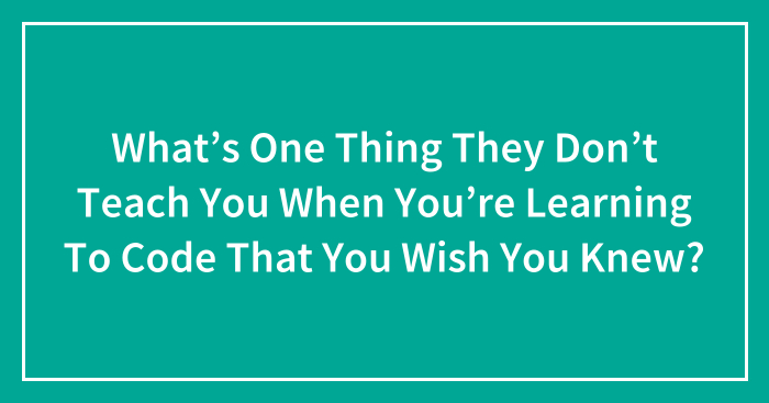 What’s One Thing They Don’t Teach You When You’re Learning To Code That You Wish You Knew?