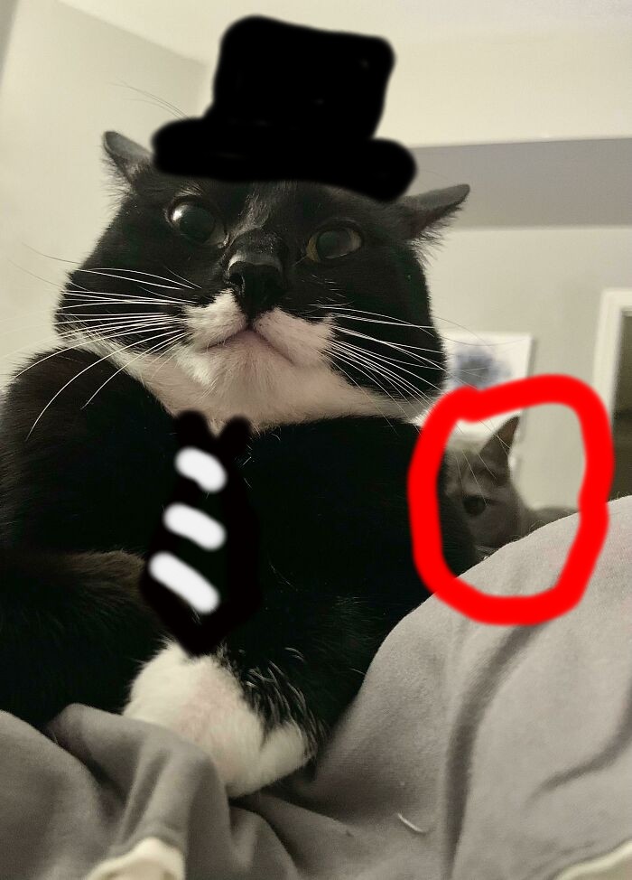 I just noticed there's another cat in the background on the bed. I'm thinking that's Meowmy.