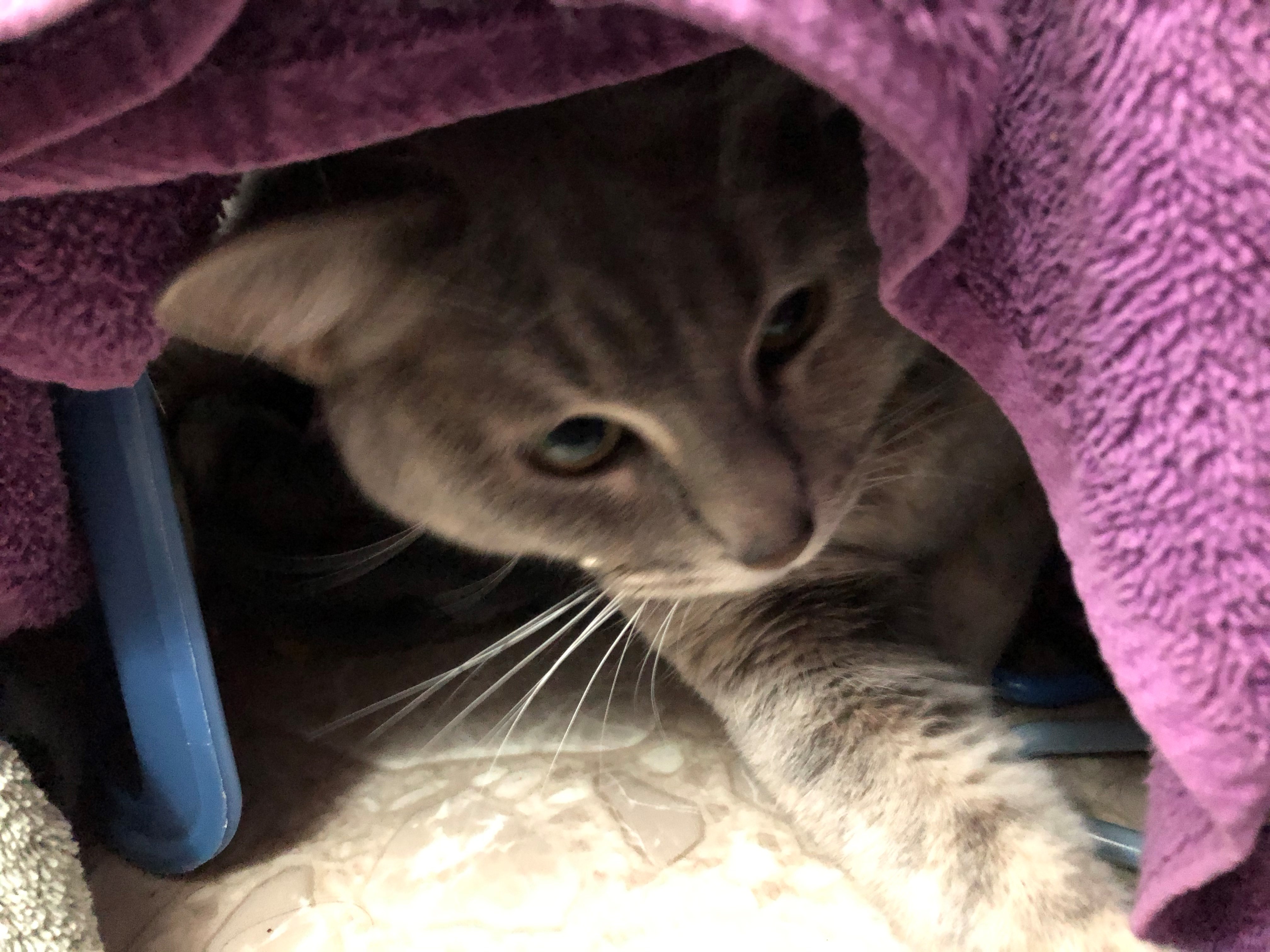 Our grandcat went in for dental work woke up on the table and took off. The tech came out and told my son it might be a while. They closed down the clinic searched everywhere, finally found him in a cabinet in the X-ray room.