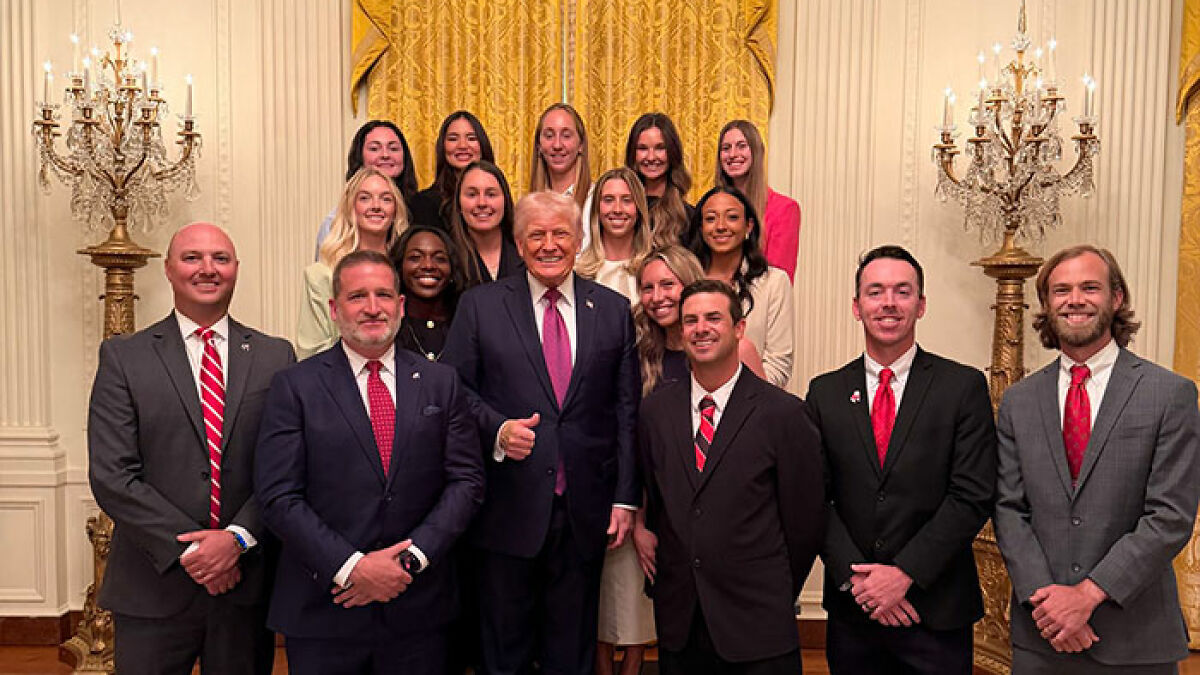 The photo in question, posted by White House communication advisor Margo Martin, showed the women gathered behind six men: Georgia athletic director Josh Brooks, deputy athletic director Ford Williams, head coach Drake Bernstein, associate head coach Jarryd Chaplin, assistant coach Will Reynolds, and the POTUS himself.