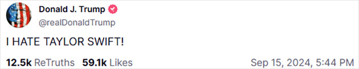 Trump, who has a history of targeting Swift, previously said without hesitation, “I hate Taylor Swift.”