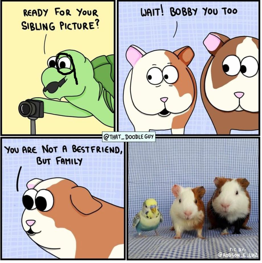 I used to line up all my critters like this for pics. Lucky my birds, hamsters and dog got along