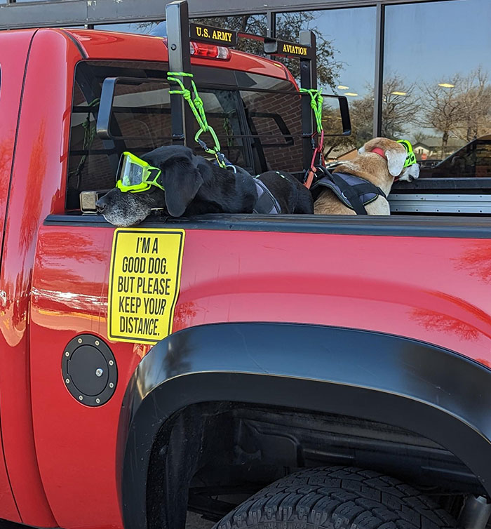 So nice to see a responsible owner who shortens the leash while in the truck bed.