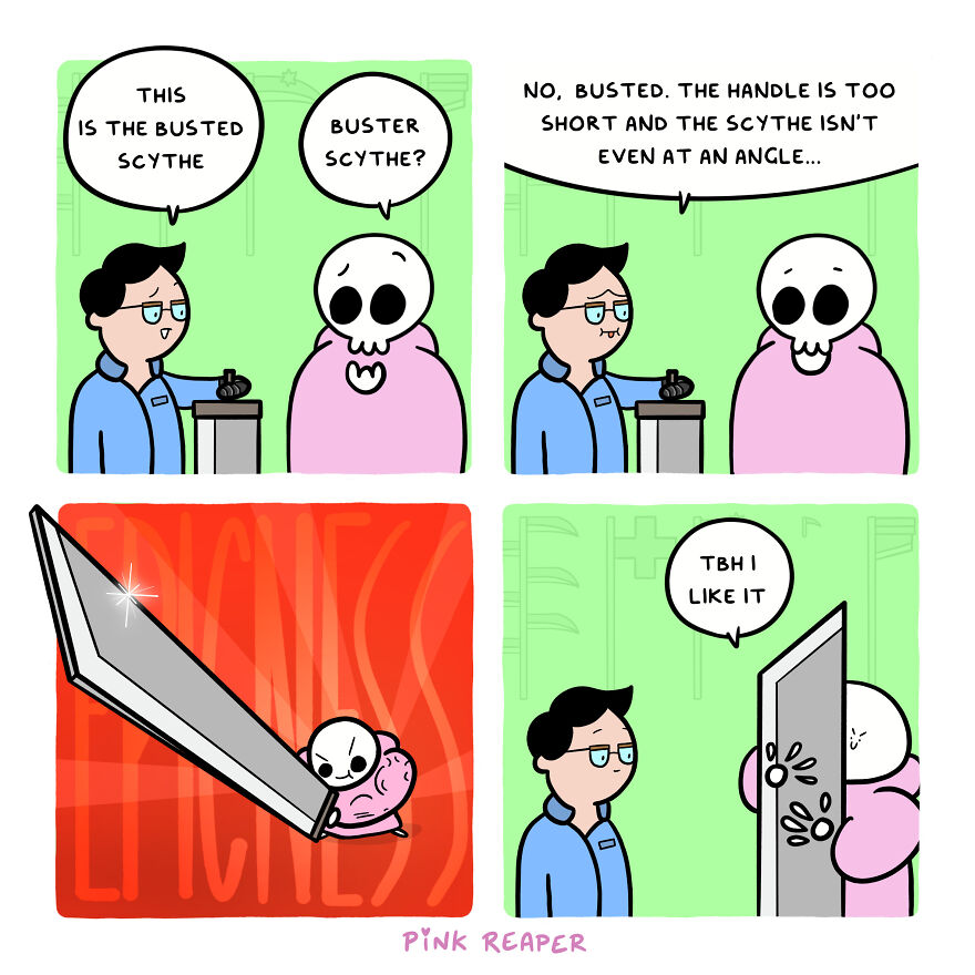 I have been pleasantly surprised by how much Pink Reaper has related to people and I think that is perhaps because they are such a blank slate - they are genderless, raceless, and pretty much impossible to categorize. This has led to me meeting so many different people at conventions who relate to the comic for a variety of reasons, it's truly a special feeling to be able to share this with so many people. I hope you all know how grateful I am for each and every one of you.