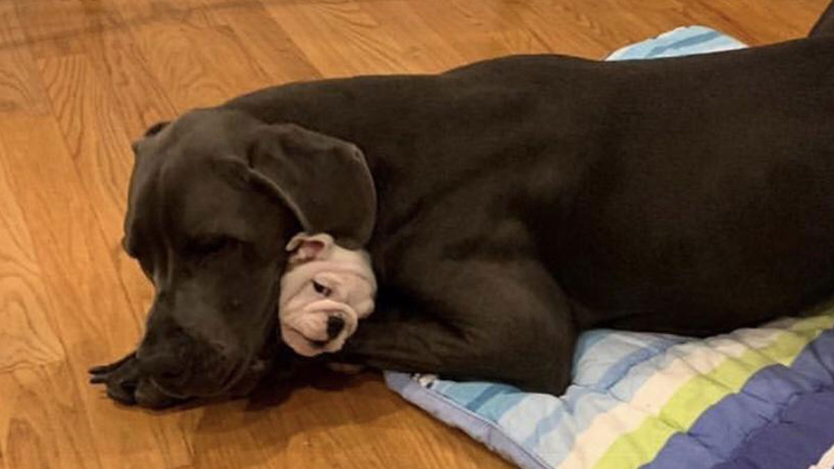 When i had a Dane we got a wee hound pupper. Loki would carry it around in his mouth. I never thought i'd have to learn the command, "Loki, spit the puppy out!"