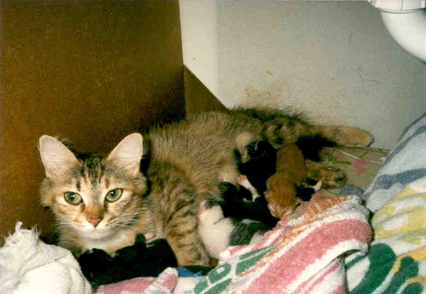 A number of years ago a pregnant stray cat wandered into my house as though she owned the place. She had five kittens in my bathroom. I found responsible forever homes for the young and kept the mama, whom I named Ragamuffin. Best cat I've ever had. RIP you wonderful alley cat. rags_famil...6e3cda.jpg