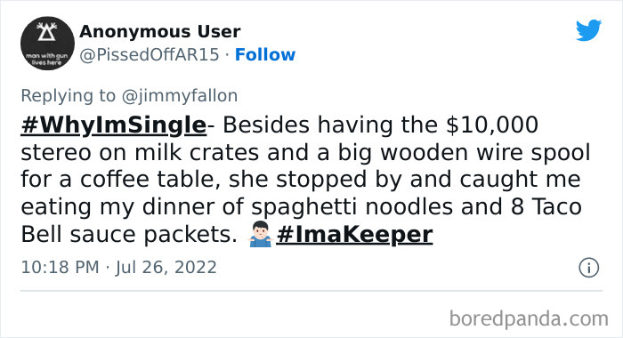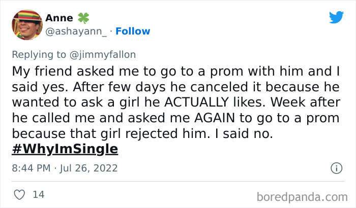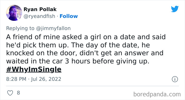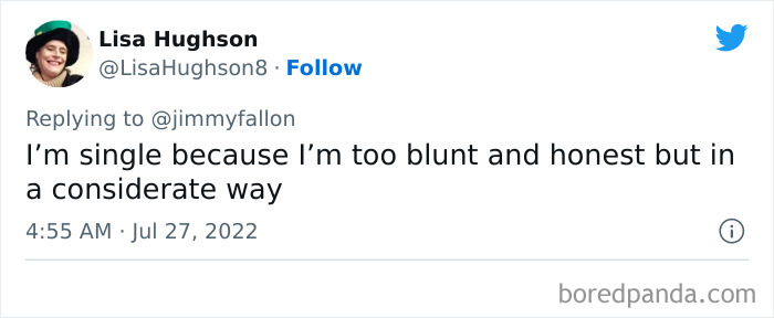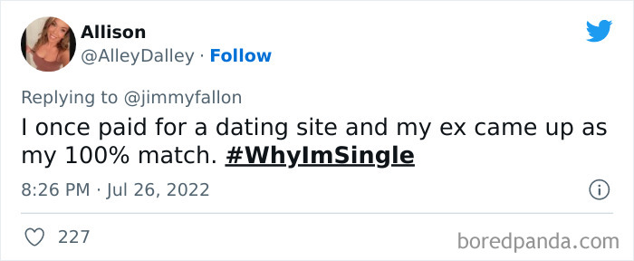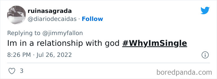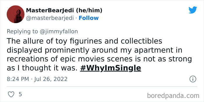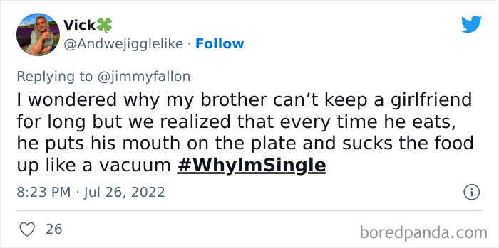 Last month, Jimmy Fallon tweeted out asking viewers to share their funny, weird or embarrassing reasons for being single, and boy, did they deliver. We’ve gathered some of their best responses down below, as well as interviews with dating and relationships coaches Rachel New and Eddie Corbano. So whether you’re happily married or looking for love, enjoy these tweets and be sure to upvote the ones that you find most hilarious or painfully relatable. Then if you’re looking for yet another Bored Panda article featuring reasons people are single, you can find our last story on the same topic right here.