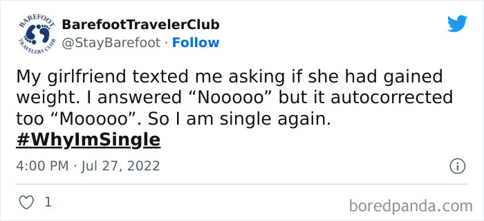 We hope you are enjoying this list of some of the most hilarious, embarrassing and bizarre reasons people are still single. Many of them might just need a little push to get back out in the dating pool, but if they are happy taking a hiatus and focusing on themselves, I’m happy for them too. Be sure to keep upvoting your favorite responses that you’d like all your fellow pandas to see, and then if you’re single too, let us know in the comments why that is! There is no shame in the single game, for all we know you might be even happier and healthier than the rest of us!